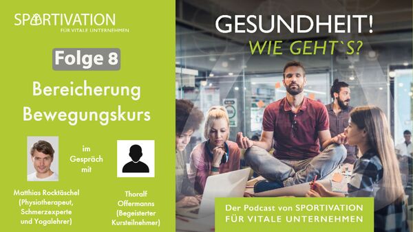 In dieser Episode erfährst du aus der Sicht eines Kursteilnehmers, wie bereichernd Bewegungskurse im Alltag sein können. Thoralf ist langjähriger Besucher von Bewegungskursen bei Sportivation und erschließt in diesem Gespräch mit mir gemeinsam die Vorteile, die sich durch eine regelmäßige Teilnahme an verschiedenen Kursen bieten. Thoralf selbst ist vielbeschäftigter Unternehmer und zeigt beispielhaft, wie es trotz hoher Anforderungen im Alltag gelingen kann, mit viel Bewegung die Gesundheit zu unterstützen und das Körperbewusstsein zu stärken. Freue dich auf einen kleinen auditiven Ausflug in den Bewegungsalltag eines Mannes, der es schafft sich immer wieder zu Bewegung zu motivieren. Erkenne mit uns gemeinsam auf frische Weise, welch großer Wert in eigenmotivierter vielseitiger Bewegung liegt.
