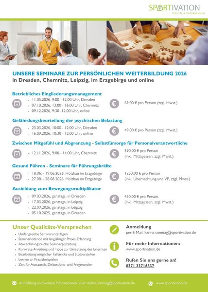 - 11. Mai, 9:00-12:00: Betriebliches Eingliederungsmanagement, Dresden